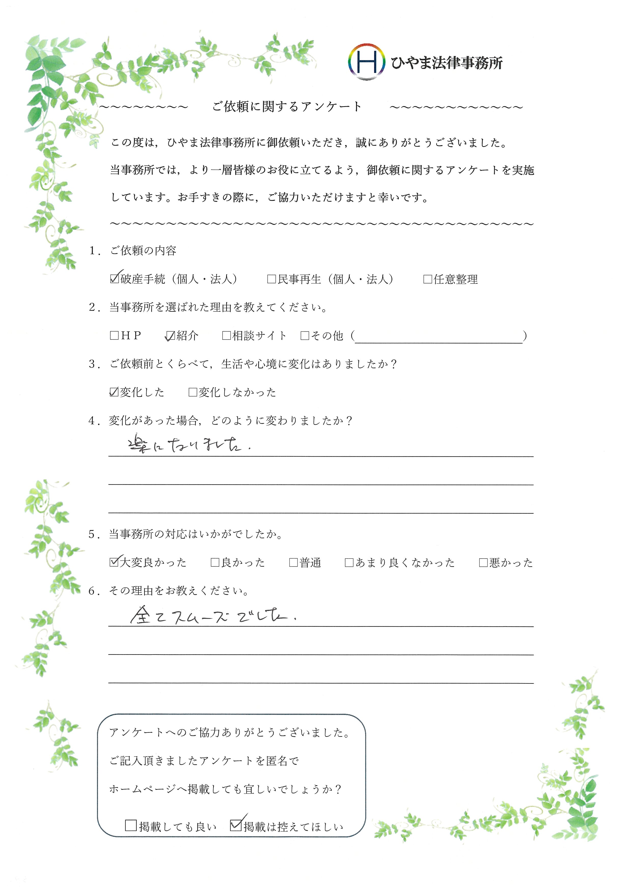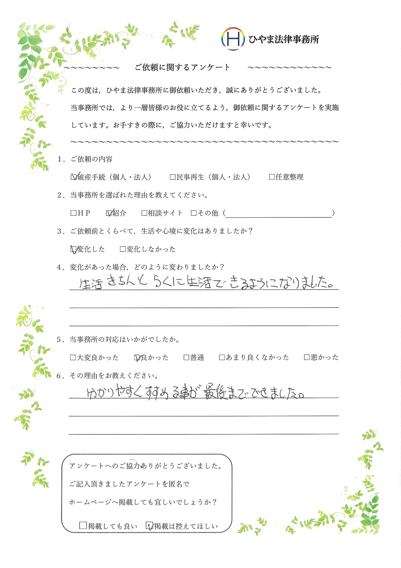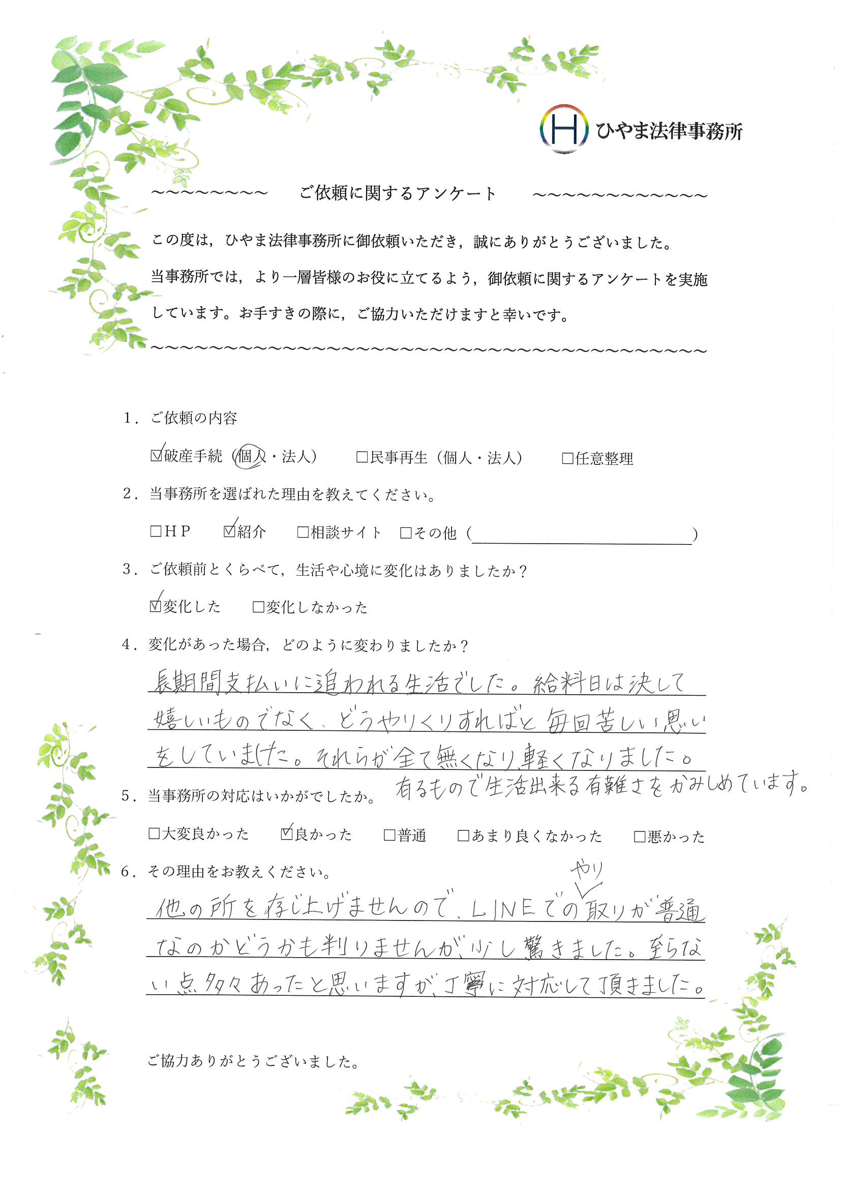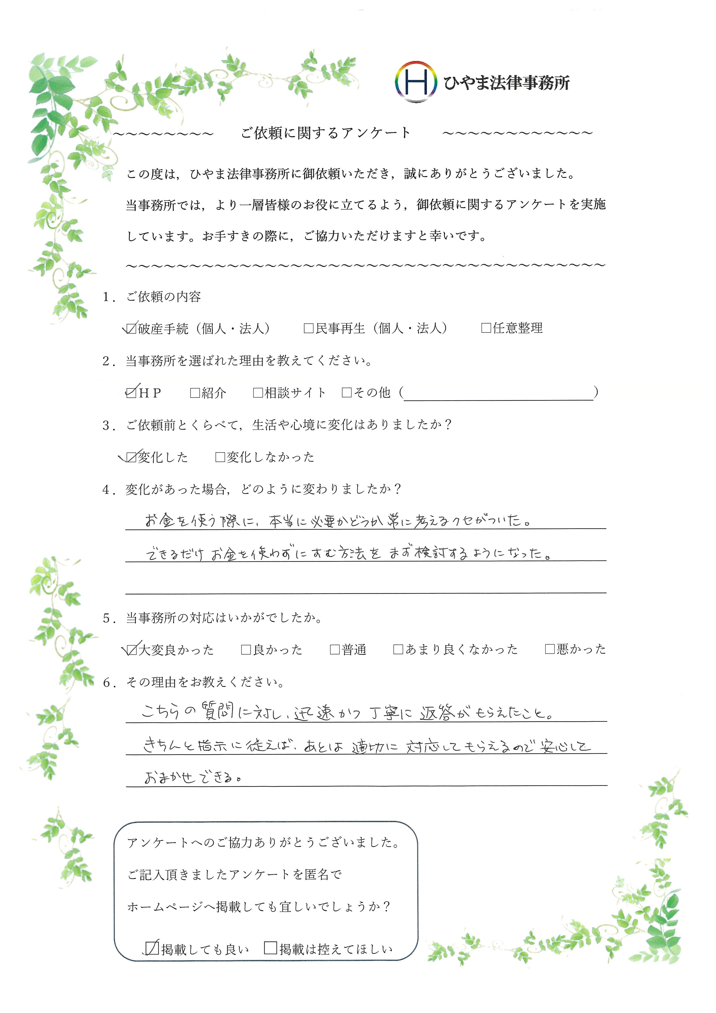 金銭的にも助かり感謝しております。本当にありがとうございました。
