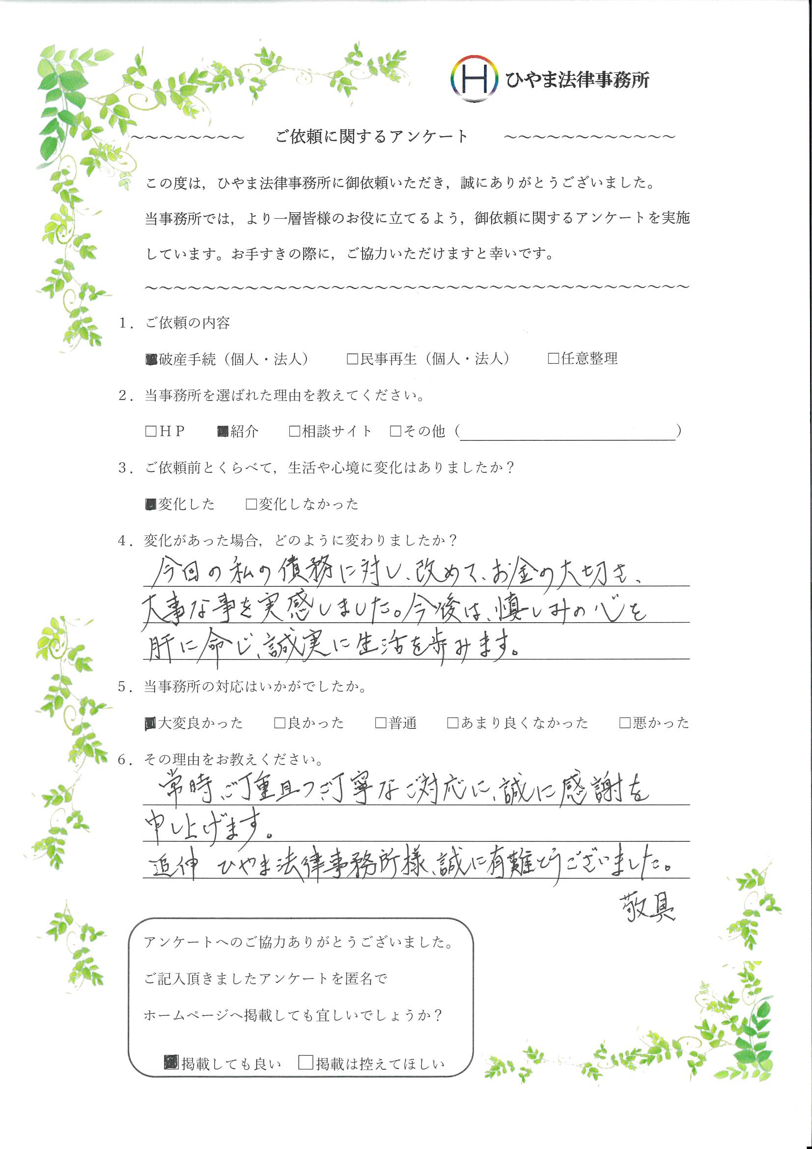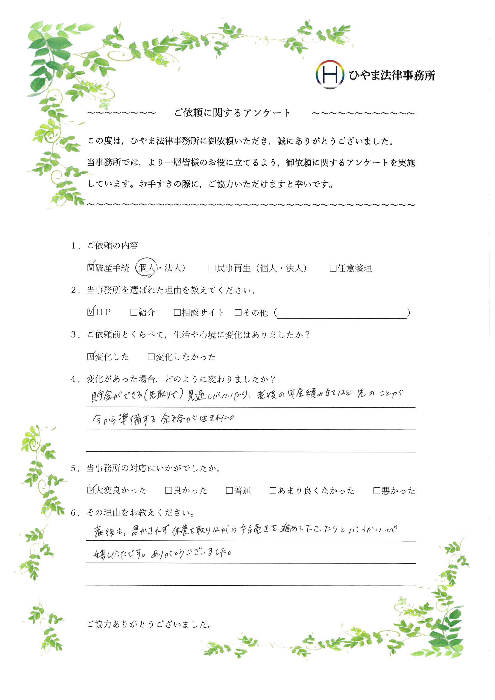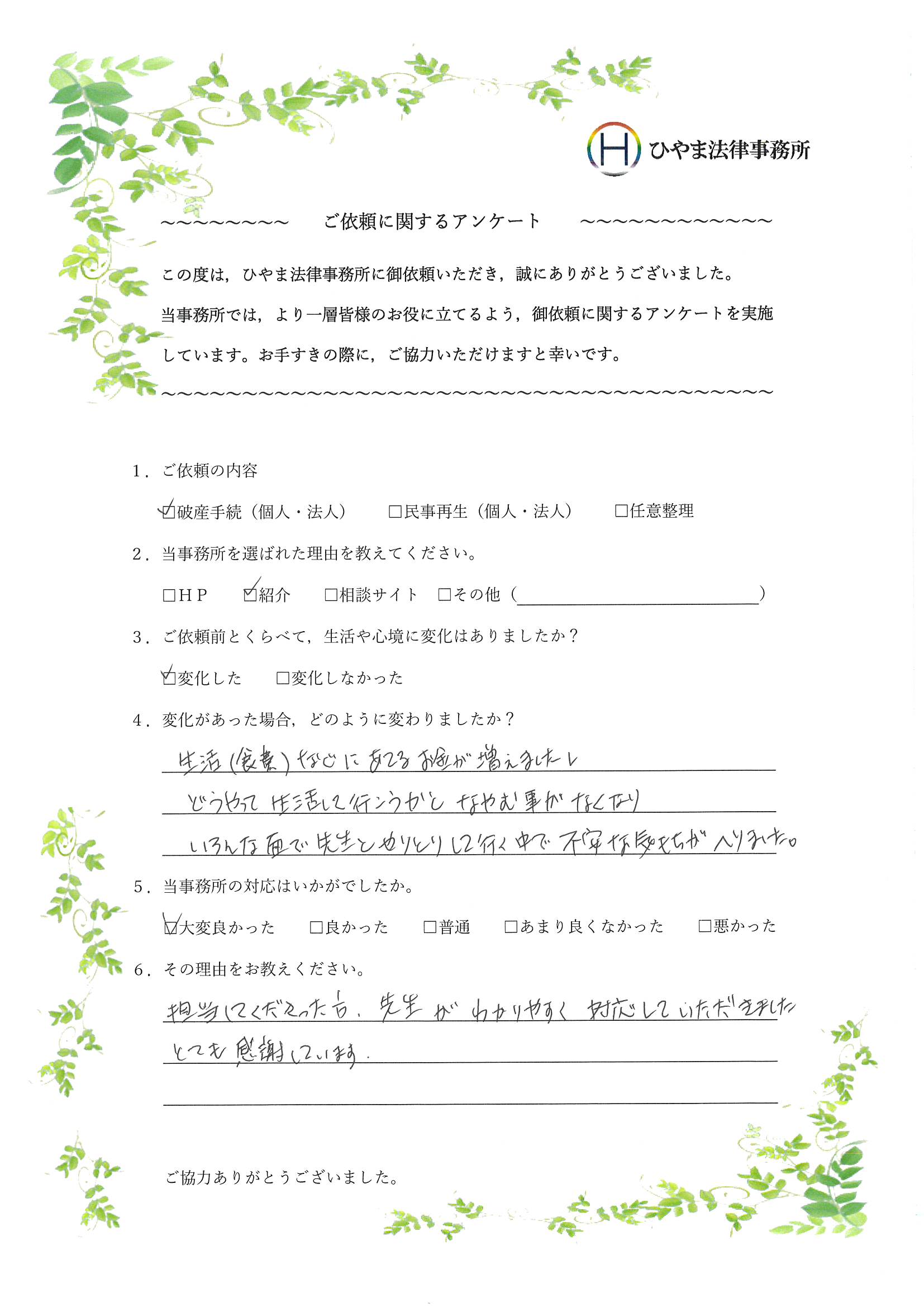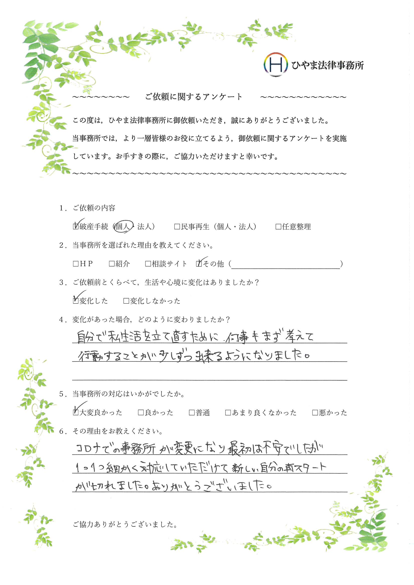 - 1.弊事務所の対応はいかがでしたか。