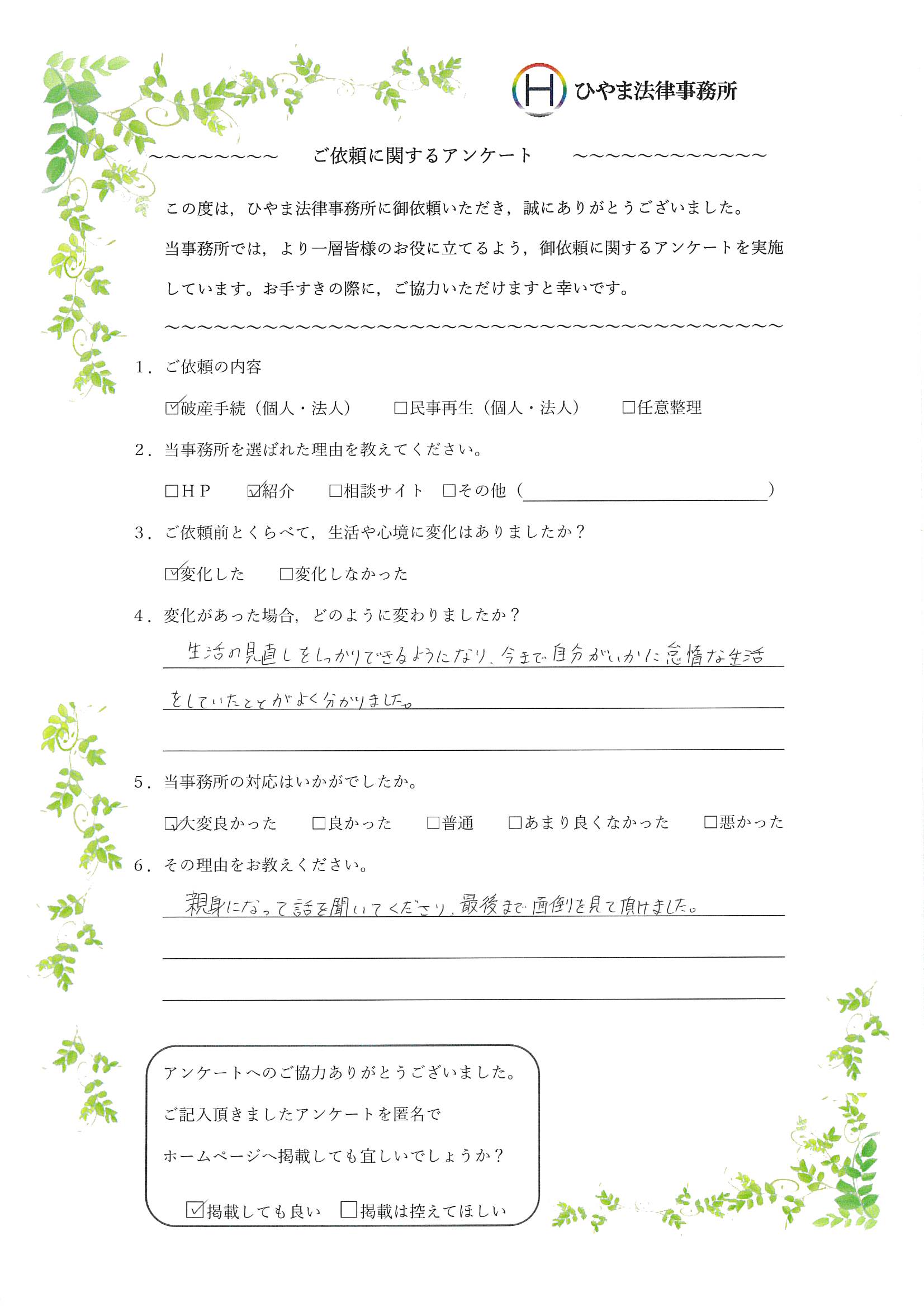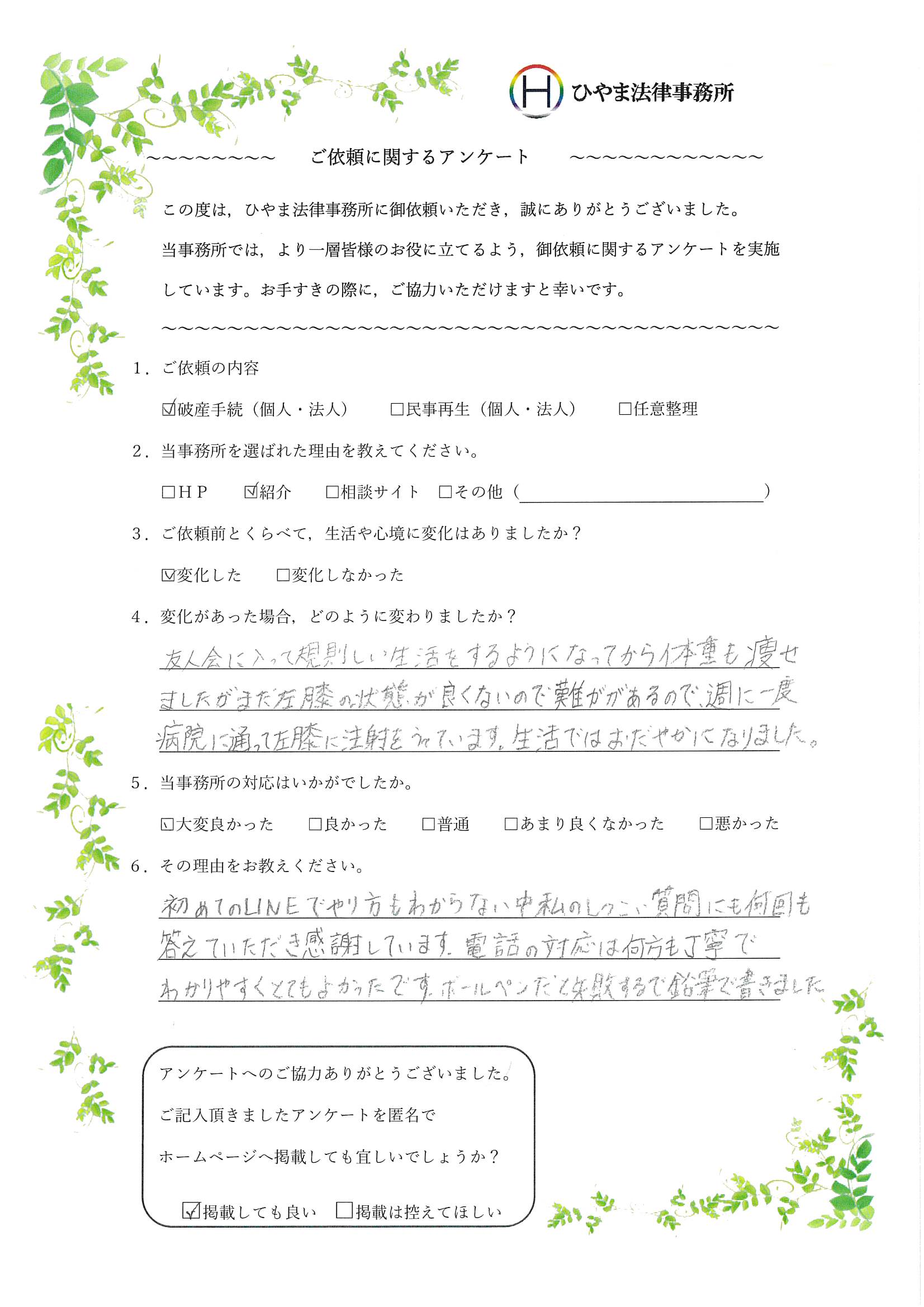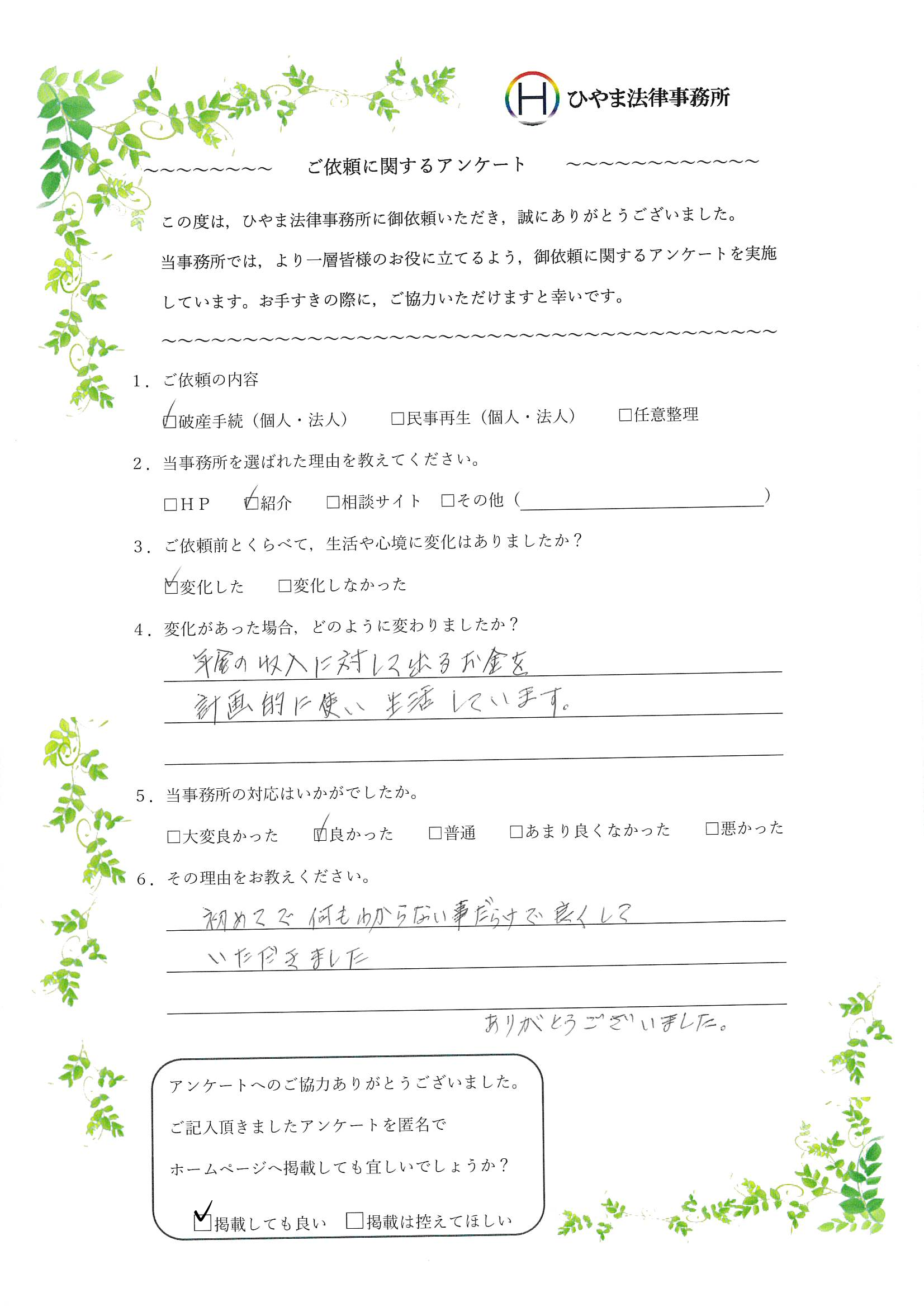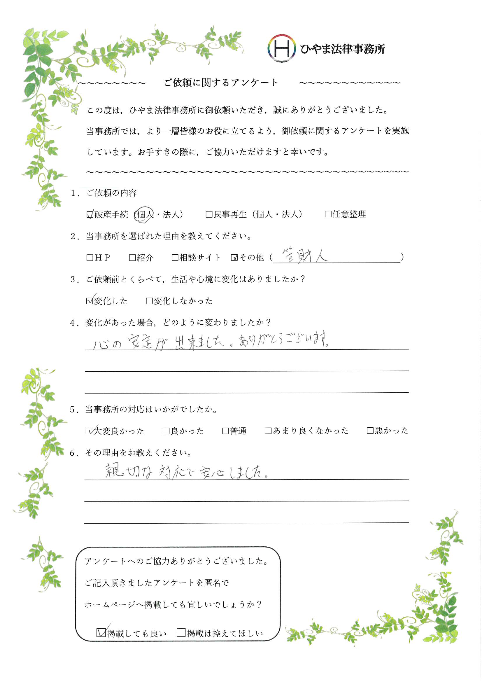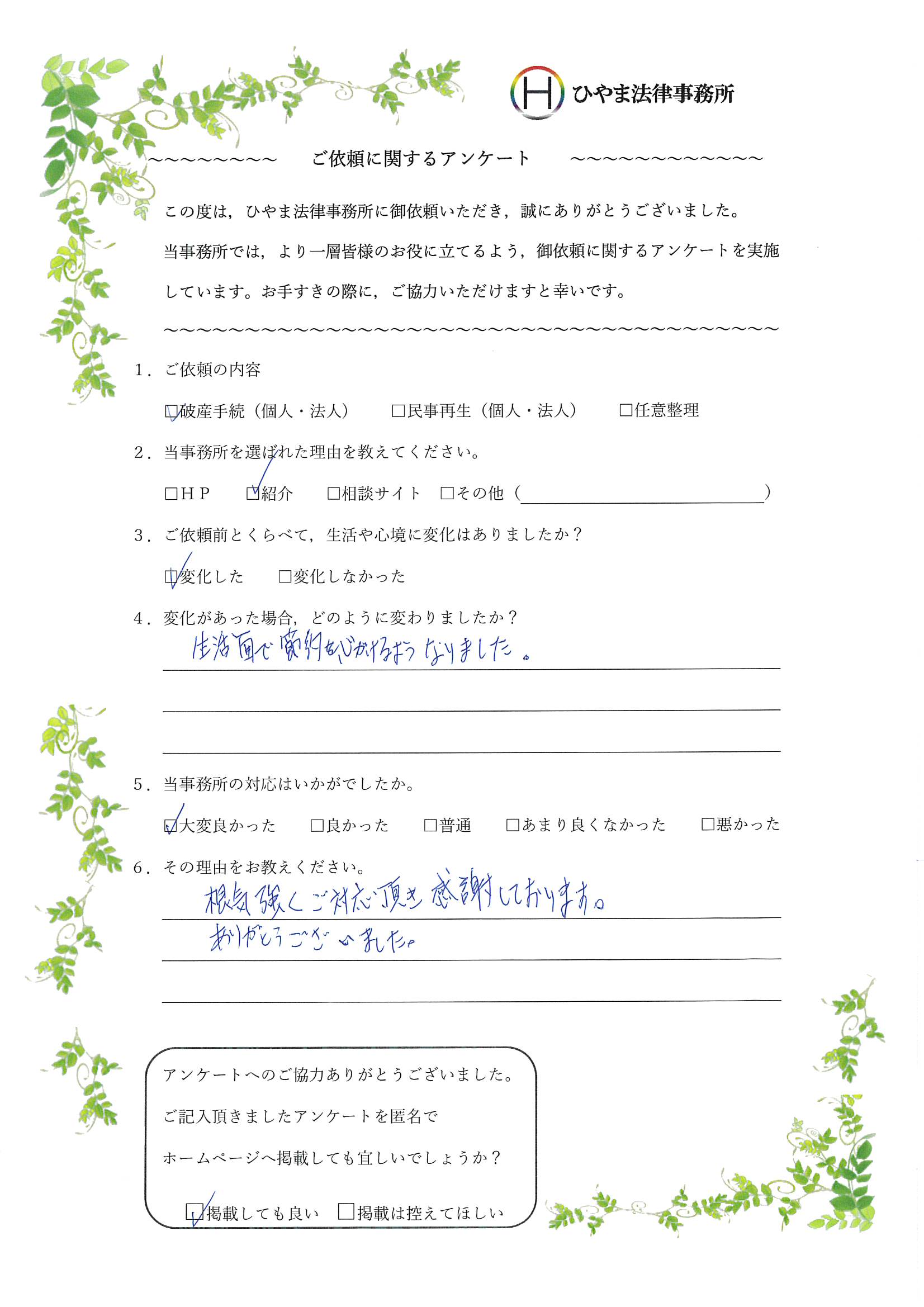 - 1.弊事務所の対応はいかがでしたか。