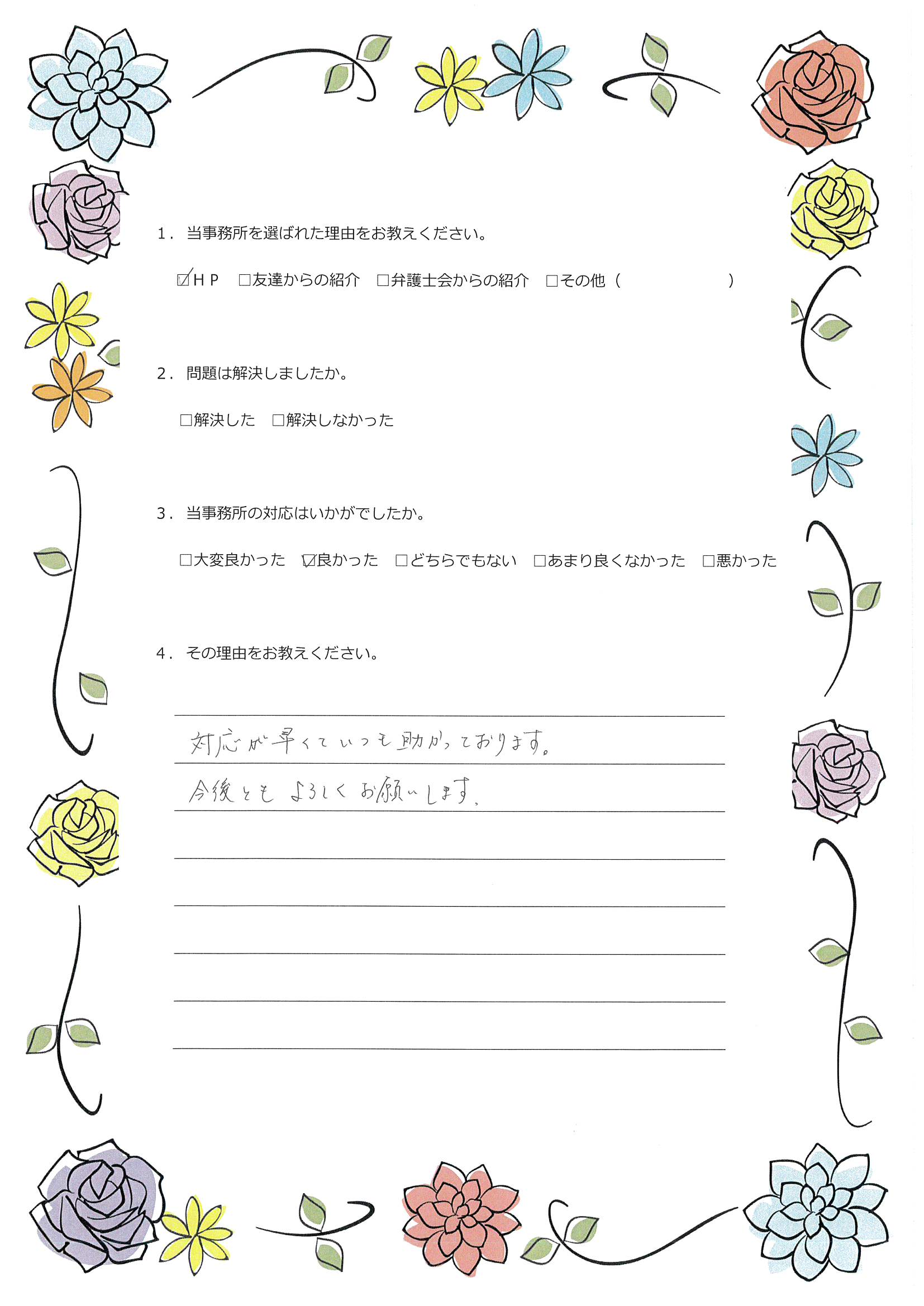 - 迅速丁寧にご対応いただき大変感謝しております。