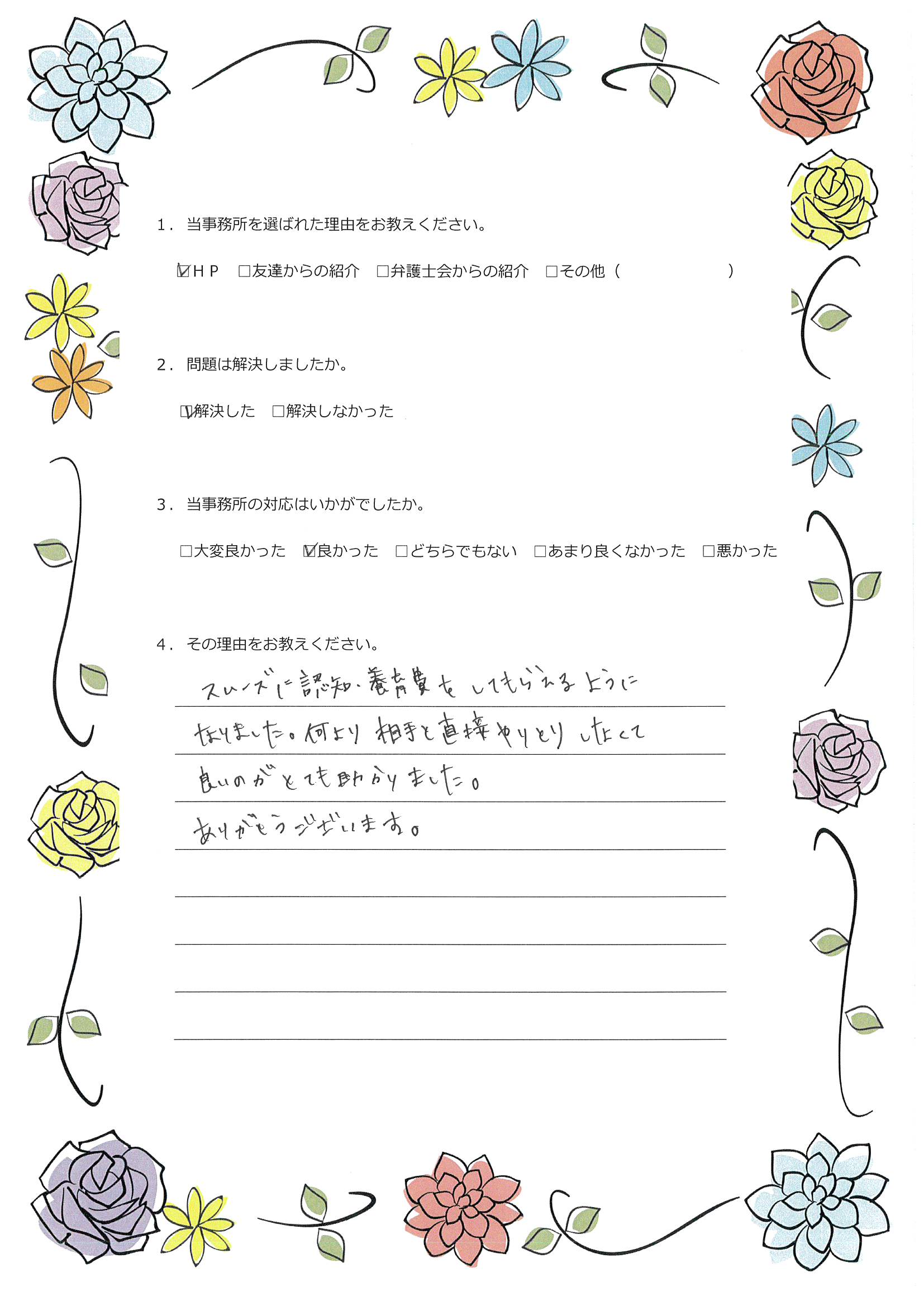 又、納得できる解決策を提示、相手方と交渉いただきありがとうございます。