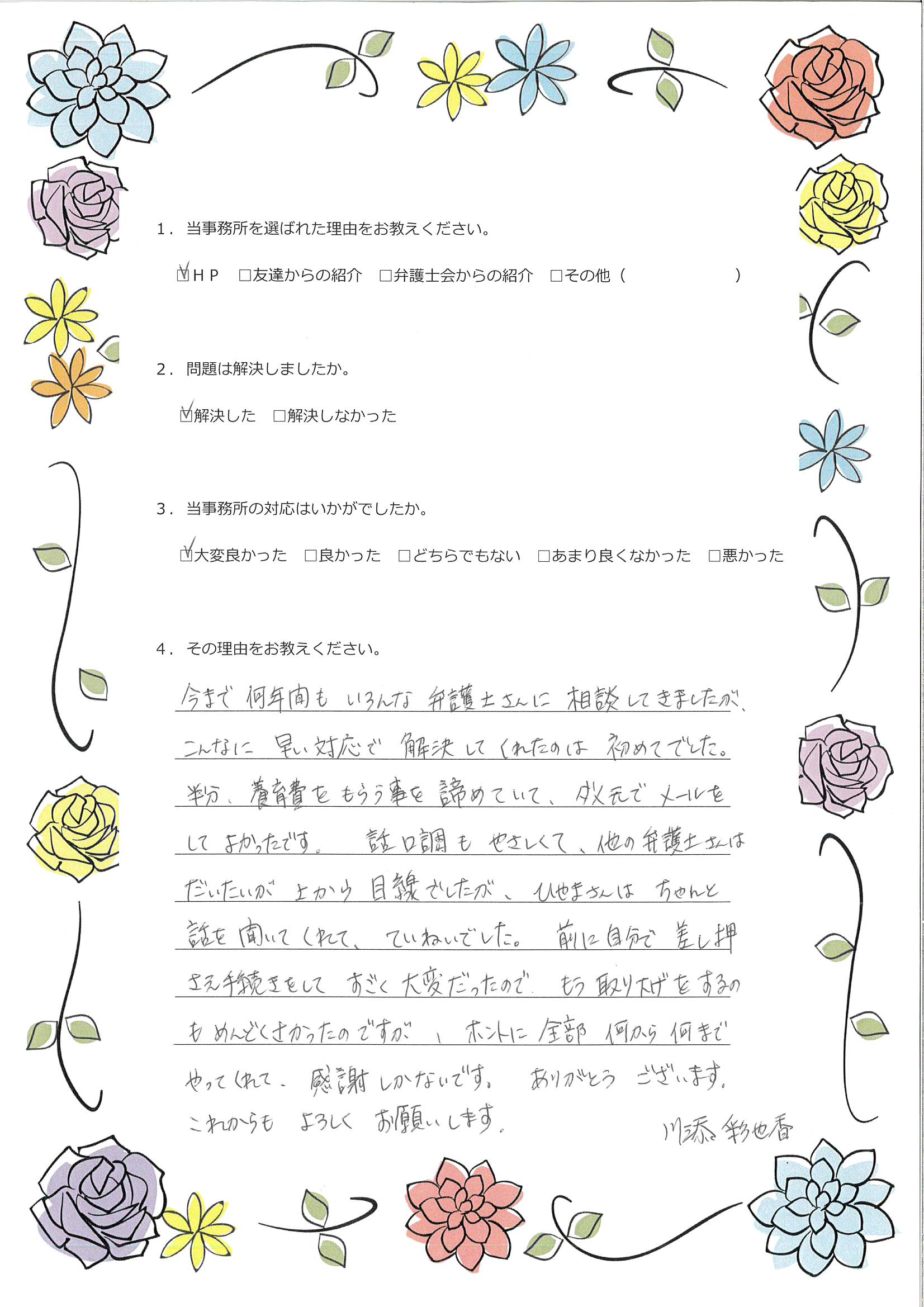 - 1.弊事務所の対応はいかがでしたか。